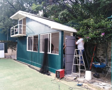 El conocimiento y la utilización de materiales prefabricados permitieron que esta vivienda se lograra construir en un tiempo de tres meses; la estructura de acero, muros y cubierta se modulan para facilitar su edificación. La forma de la vivienda brinda al espacio interior una doble altura otorgando una sensación de amplitud, que a su vez conecta visual y físicamente la habitación en planta alta con la estancia y cocineta, este monoambiente unifica lo público y lo privado, teniendo la posibilidad de conectar con el exterior.